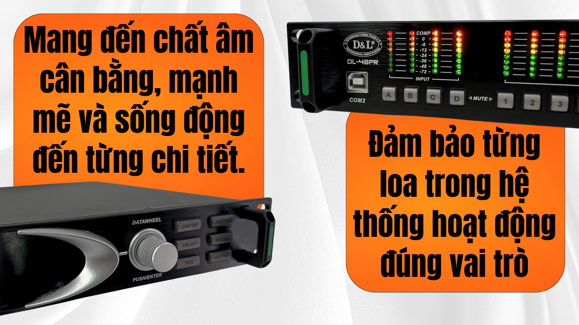 Với DSP 24-bit, tỷ lệ S/N lên đến 110dB, cùng độ méo hài cực thấp <0.0025%, DL-48 PRO không chỉ là một thiết bị phân tần – mà là trái tim điều khiển toàn bộ chất lượng âm thanh của hệ thống, mang đến hiệu suất ổn định, chi tiết và tinh khiết trong từng dải tần.