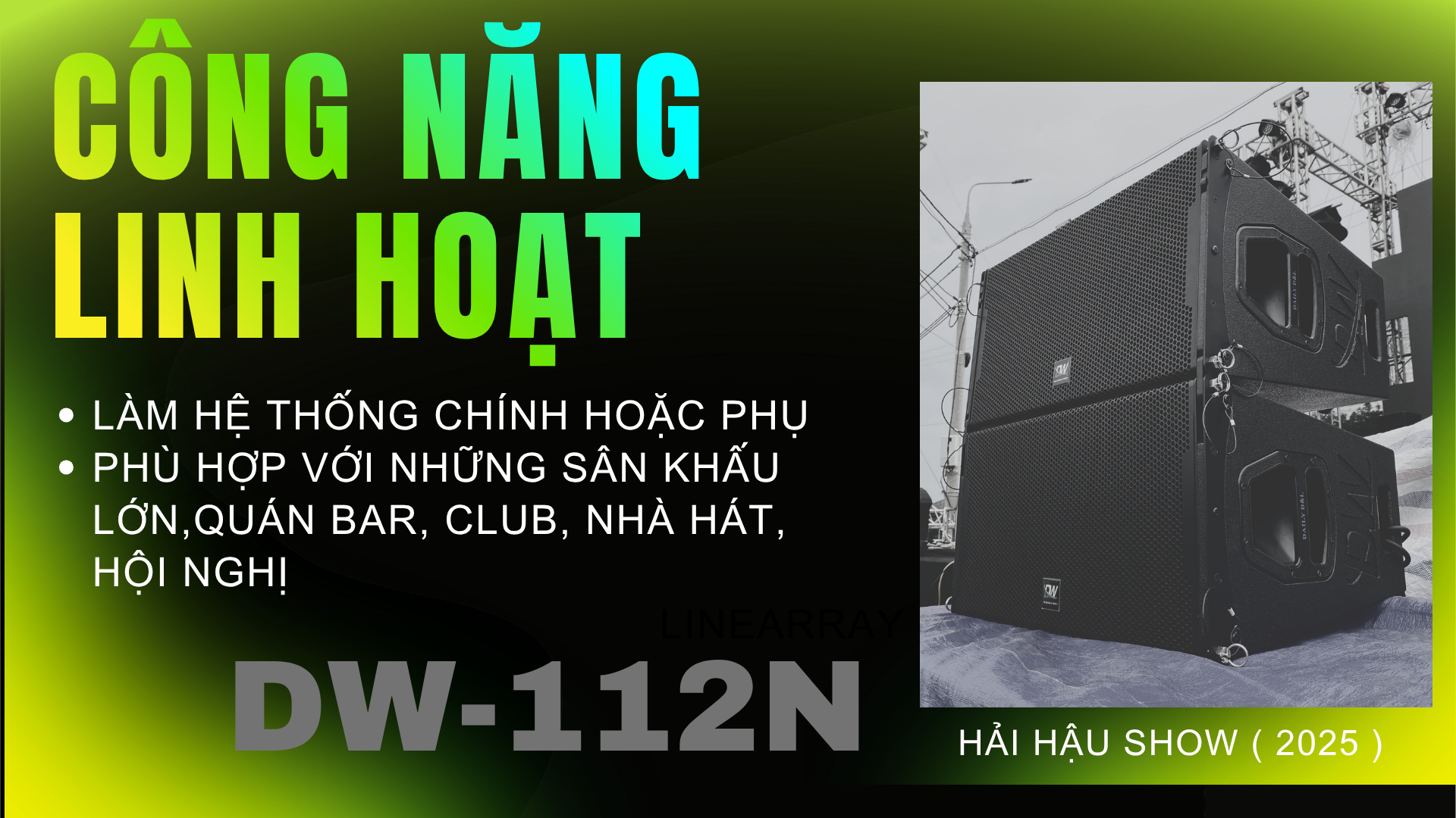 Với thiết kế tinh gọn, vật liệu cao cấp và hiệu suất ấn tượng, DW-112N không chỉ là một chiếc loa line array thông thường, mà còn là giải pháp âm thanh toàn diện cho các chuyên gia biểu diễn.