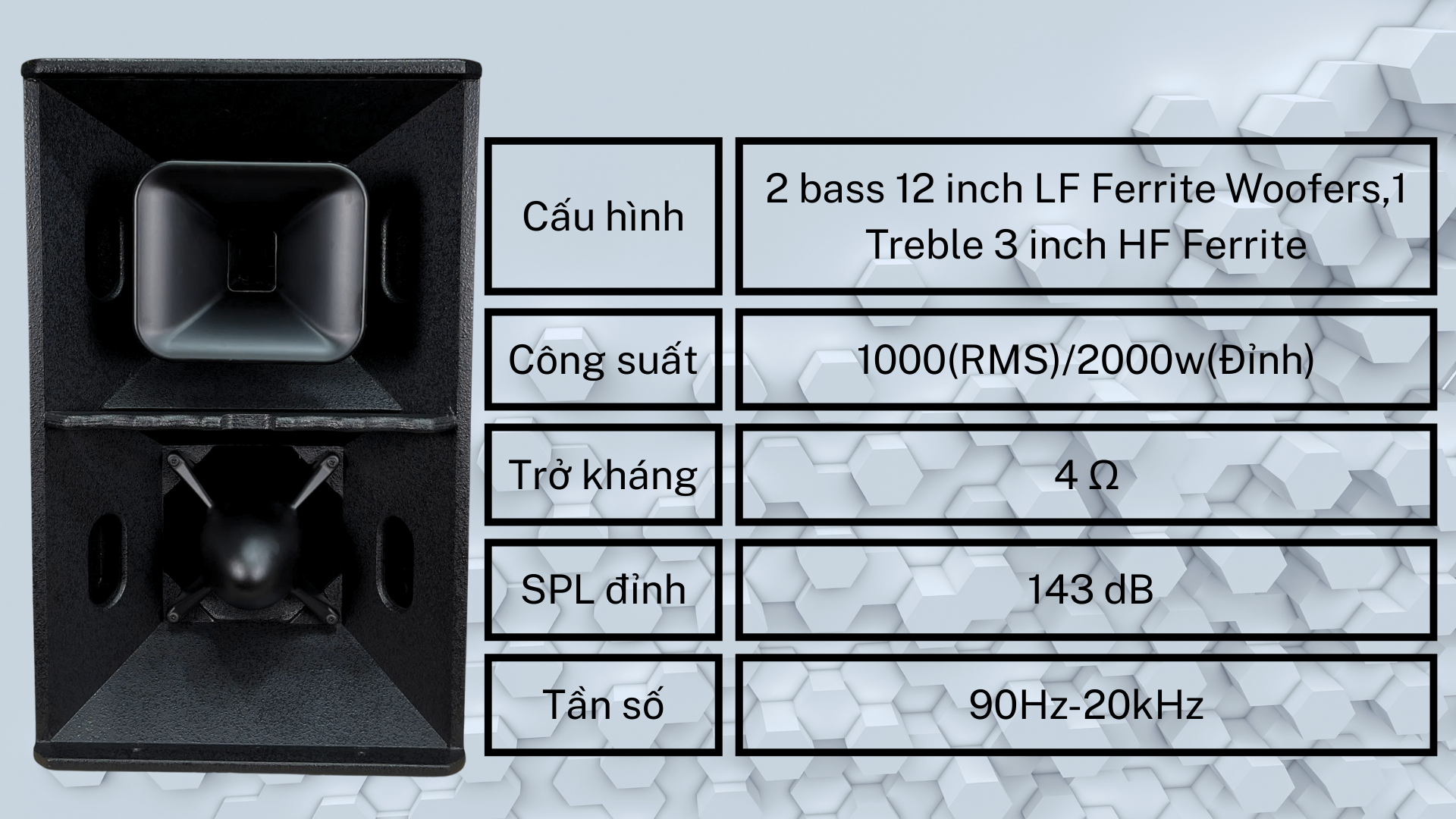 TK-212F sở hữu 2 củ loa bass 12 inch (từ Ferrite) và 1 treble 3 inch Ferrite – một cấu hình thường chỉ thấy ở các dòng loa full cao cấp.