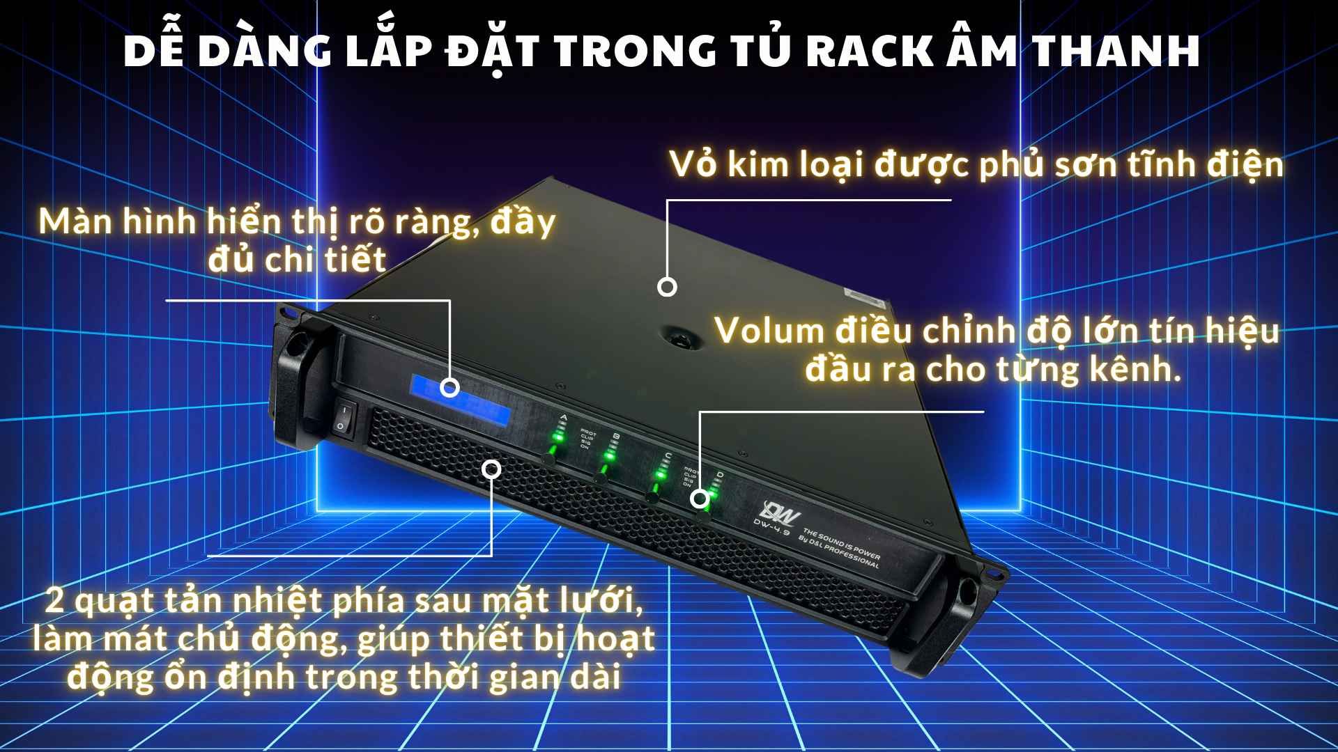 Với thiết kế bền bỉ, mạch Class H tiên tiến, âm thanh trung thực và hiệu suất vượt trội, DW-4.9 không chỉ là một main công suất, mà còn là trung tâm năng lượng cho mọi hệ thống âm thanh chuyên nghiệp.