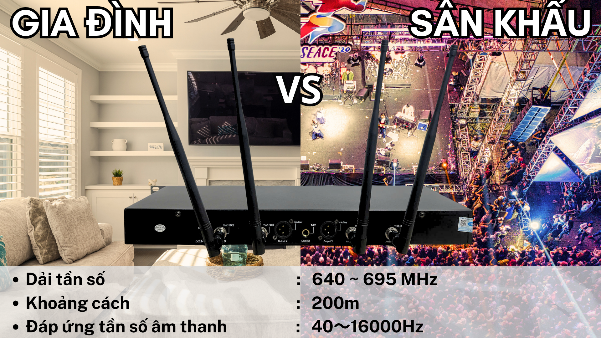 Nhờ những thông số này, giọng nói hoặc nhạc cụ được truyền tải rõ ràng, trung thực và mạnh mẽ – không bị méo, không rè, không hú. Đặc biệt, với chế độ thí điểm cộng với số, hệ thống sẽ luôn nhận biết chính xác tín hiệu truyền, hạn chế tình trạng nhiễu hoặc mất kết nối.
